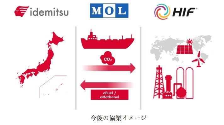 商船三井・出光興産・HIF は、エネルギー・輸送業界の脱炭素化をリードすべく、原料となるCO2 の海上輸送を含め、合成燃料/合成メタノールのサプライチェーン確立にむけて共同で検討 を行うと共に、潜在的なビジネスチャンスを協働で開拓していきます。