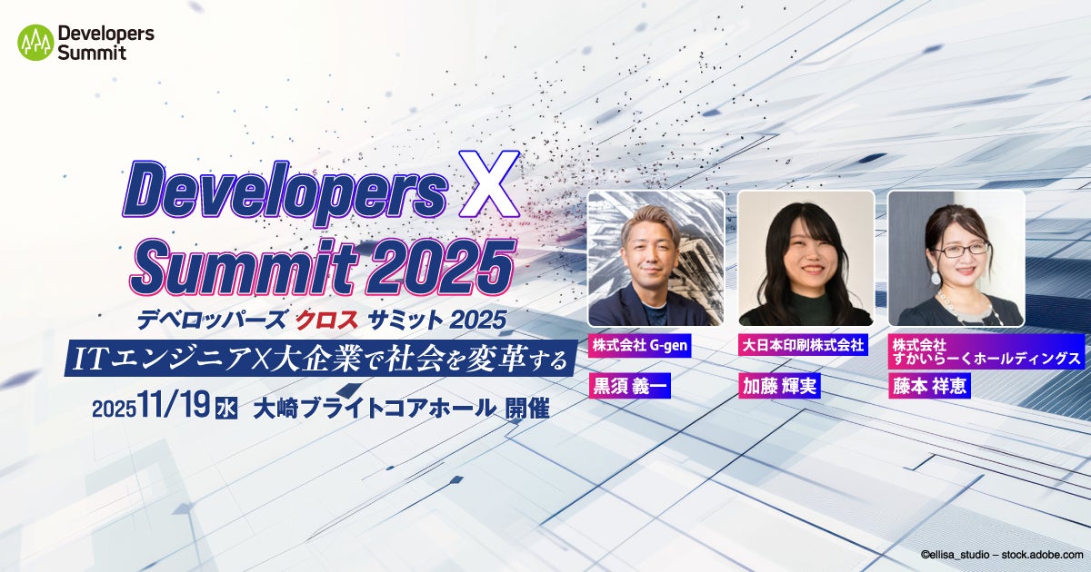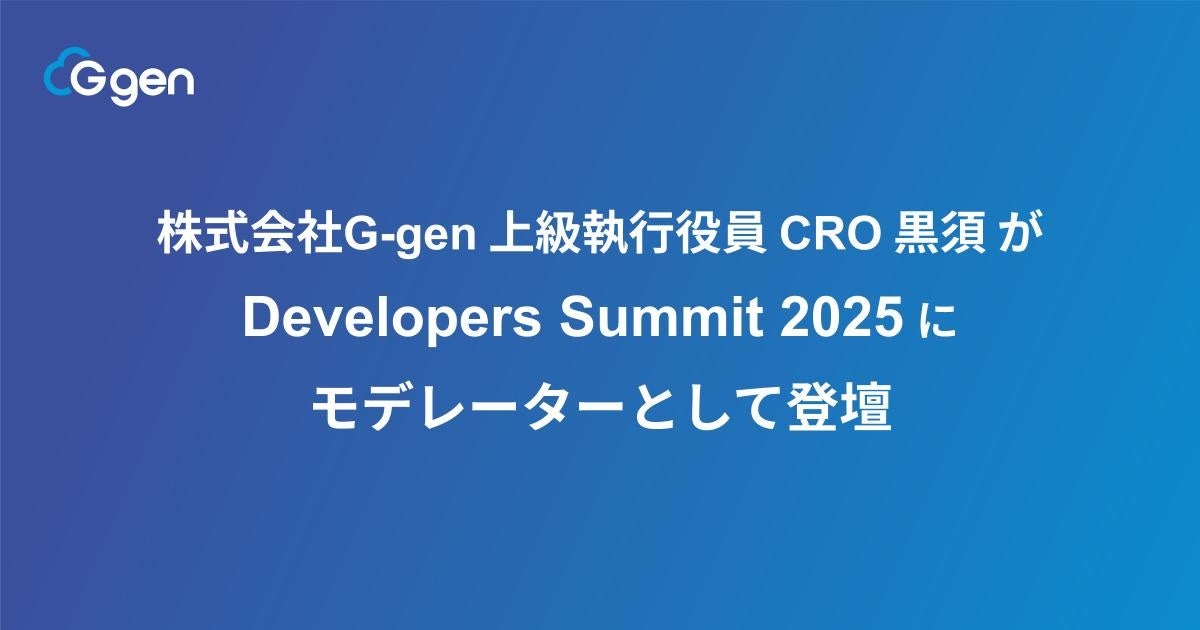 株式会社G-gen(本社:東京都新宿区、代表取締役:羽柴 孝、以下G-gen)は、2025年11月19日(水)に開催される Developers Summit 2025(主催:翔泳社)にて、上級執行役員CRO 黒須 義一 がセッション「“成長戦略から変革まで – クラウド活用で向かう次の10年”」にモデレーターとして登壇することをお知らせいたします。