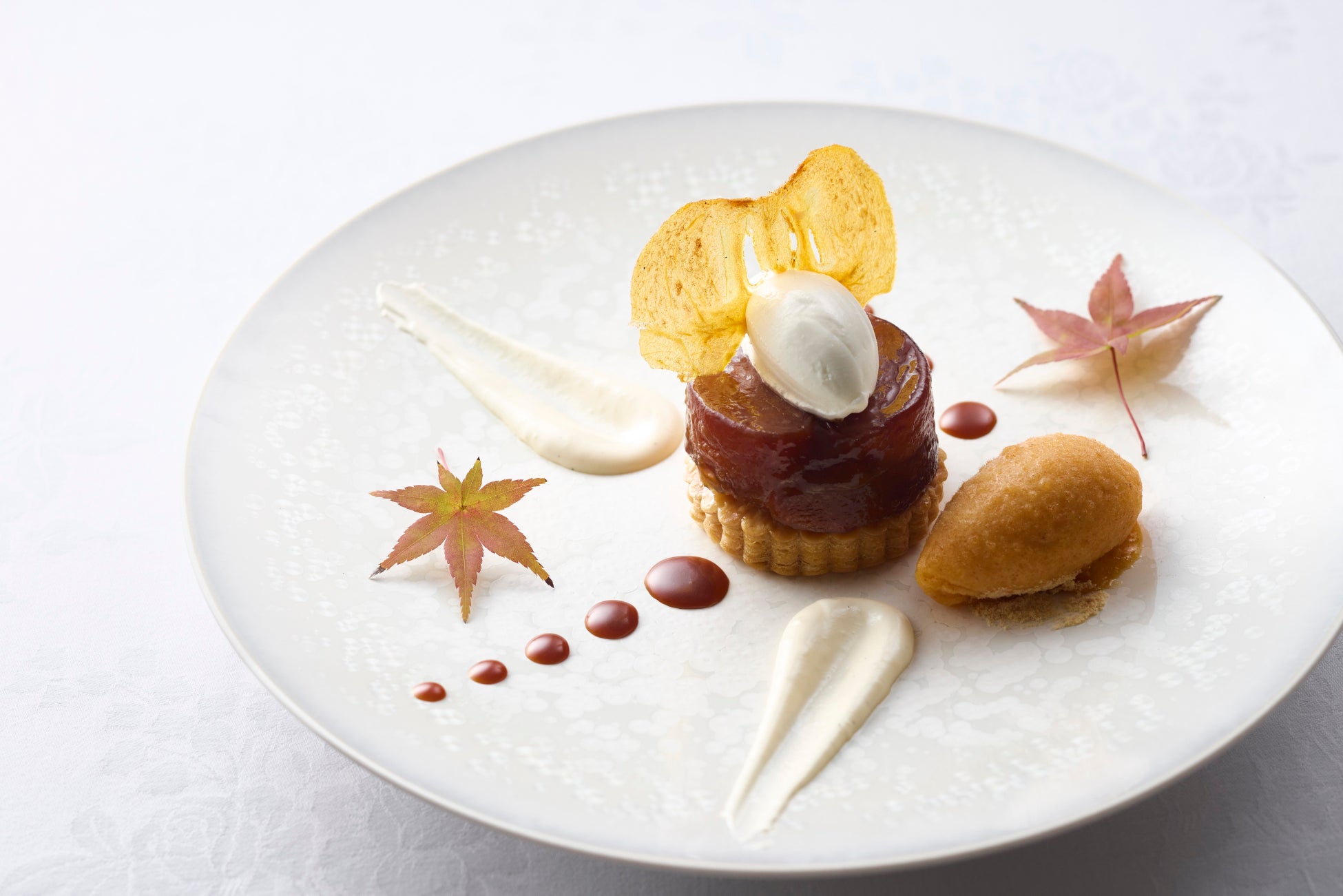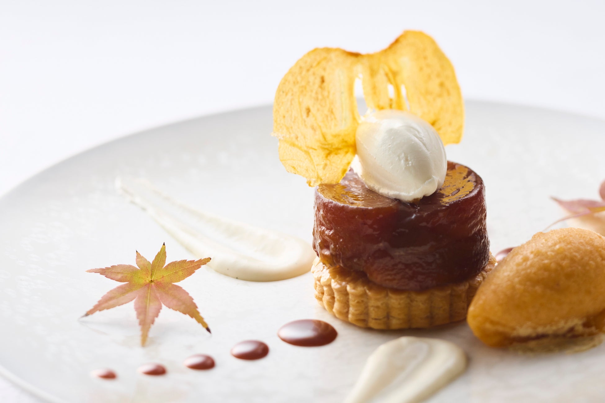福岡県産秋王のタルトタタンとソルベ マスカルポーネのクリームと共に