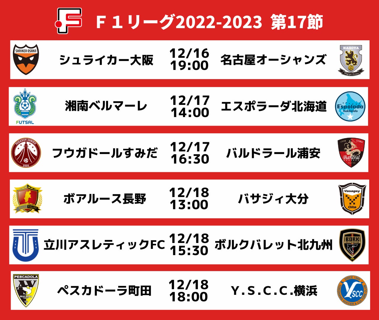 注目試合が目白押し!名古屋プレーオフ出場獲得なるか。長野対大分、湘南の声出し応援検証試合にも注目!【Fリーグ2022-2023 ディビジョン1 第17節】