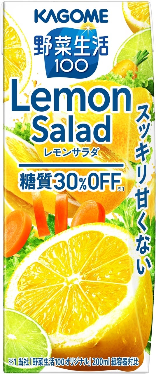 「野菜生活100 レモンサラダ」は、糖質30%オフ※1の野菜果実ミックス飲料です。