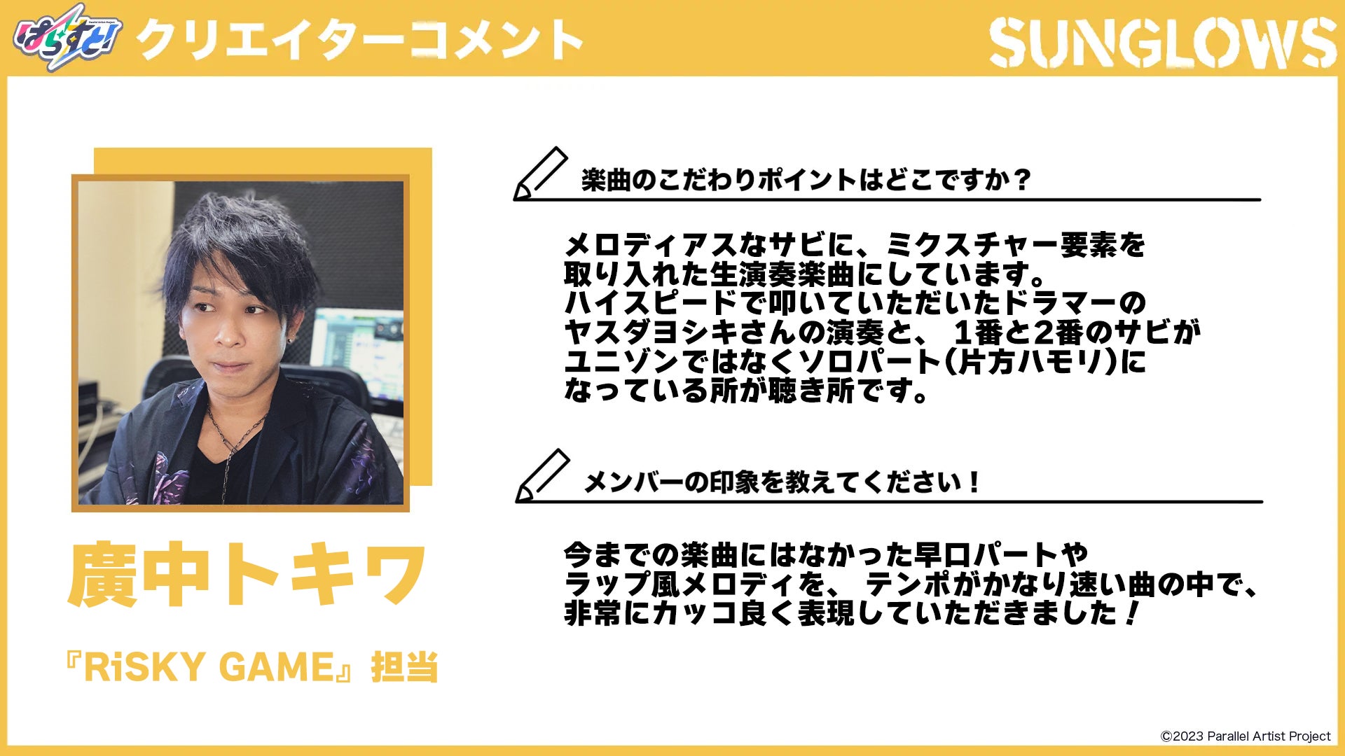 〜廣中トキワ「Sunglows『RiSKY GAME』」担当〜