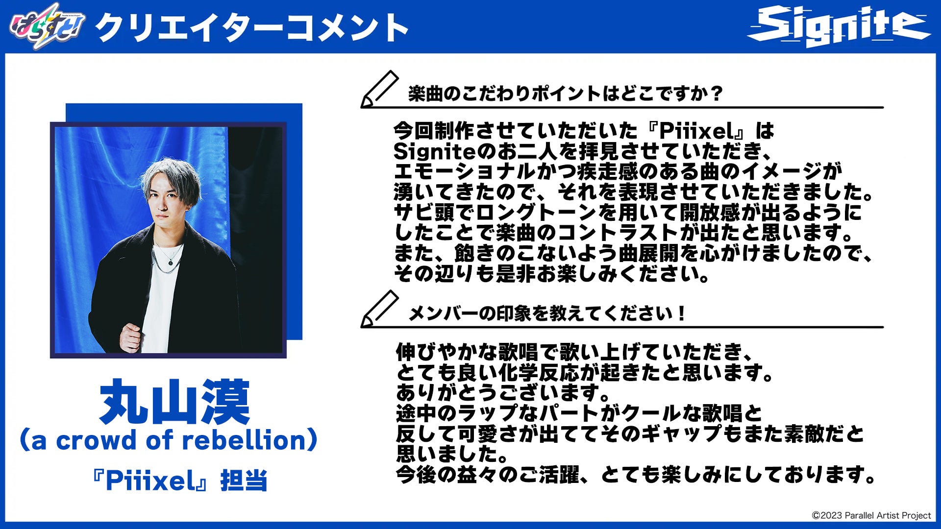 〜丸山漠(a crowd of rebellion)「Signite『Piiixel』」担当〜