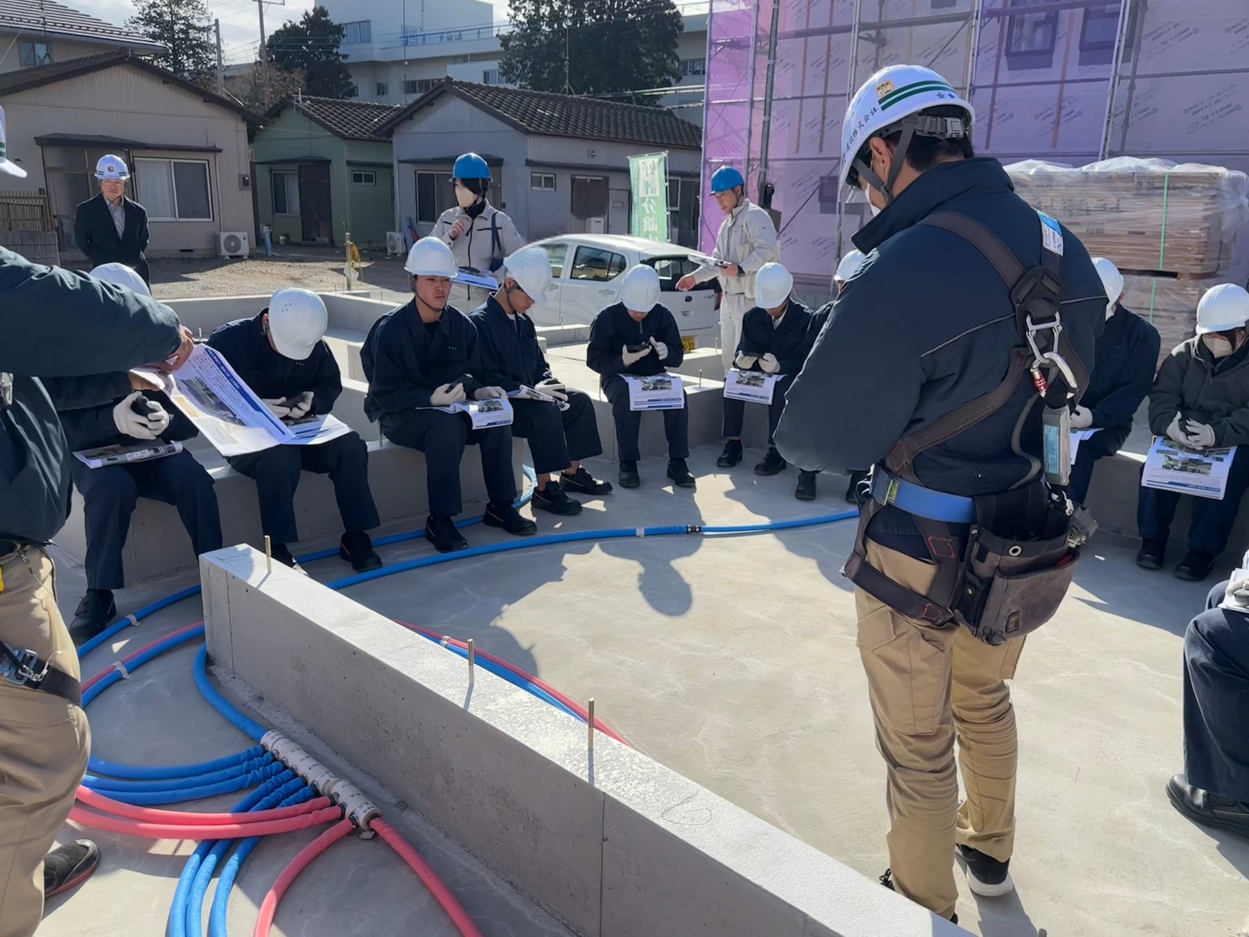 本見学会は、建築・建設業界の未来を担うZ世代である建築科の高校生に、実際の住宅建築プロセスや、iPadなどのデジタルツールを活用した最先端の現場管理を体感してもらうことで、時代とともに変化する建築現場の働き方を知ってもらうことを目的として実施しています。