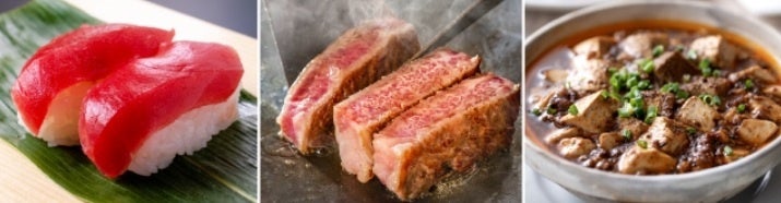 目の前で仕上げるLIVEカウンターでは、熱々でジューシーなサーロインステーキや三重まぐろの握り寿司、食材の旨味を最大限に引き出す天麩羅など、臨場感あふれるパフォーマンスとともに出来立てをお届けします。