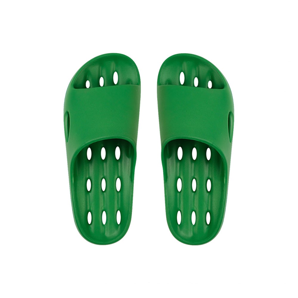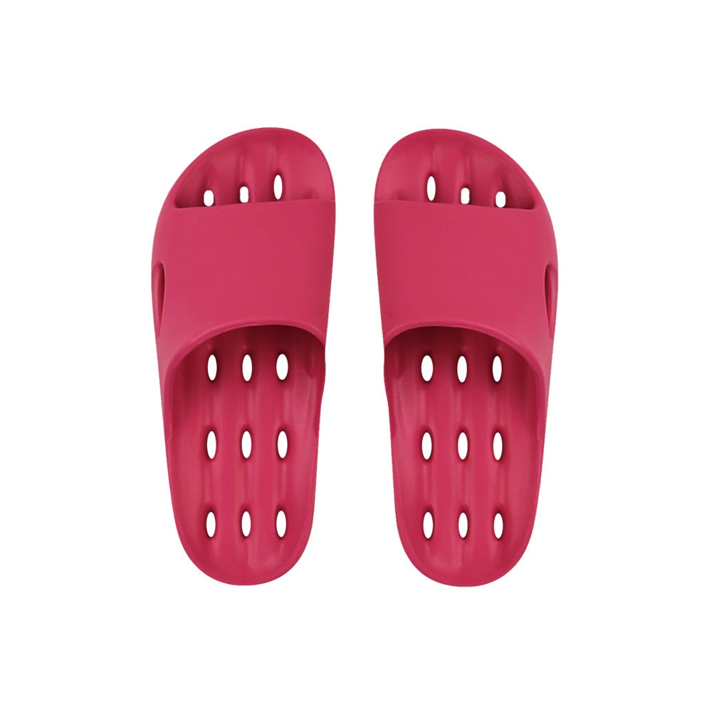 ビビッドなカラーが目を引く超軽量シャワーサンダル。片足約100g(Mサイズ)と驚きの軽さで、ベランダやバスルームはもちろん、ワンマイルシューズとしても活躍します。底面15個+サイド2個、計17個の水抜きホールを備え、水はけの良い設計。湿気がこもりにくく、清潔さを保ちやすい仕様です。5本溝のアウトソールとストライプパターンが滑りを抑え、安定感のある履き心地を実現。柔軟性と耐久性に優れたEVA素材を使用し、ねじっても変形しにくいしなやかさが特徴。2.5cmソールがさりげない存在感をプラスします。