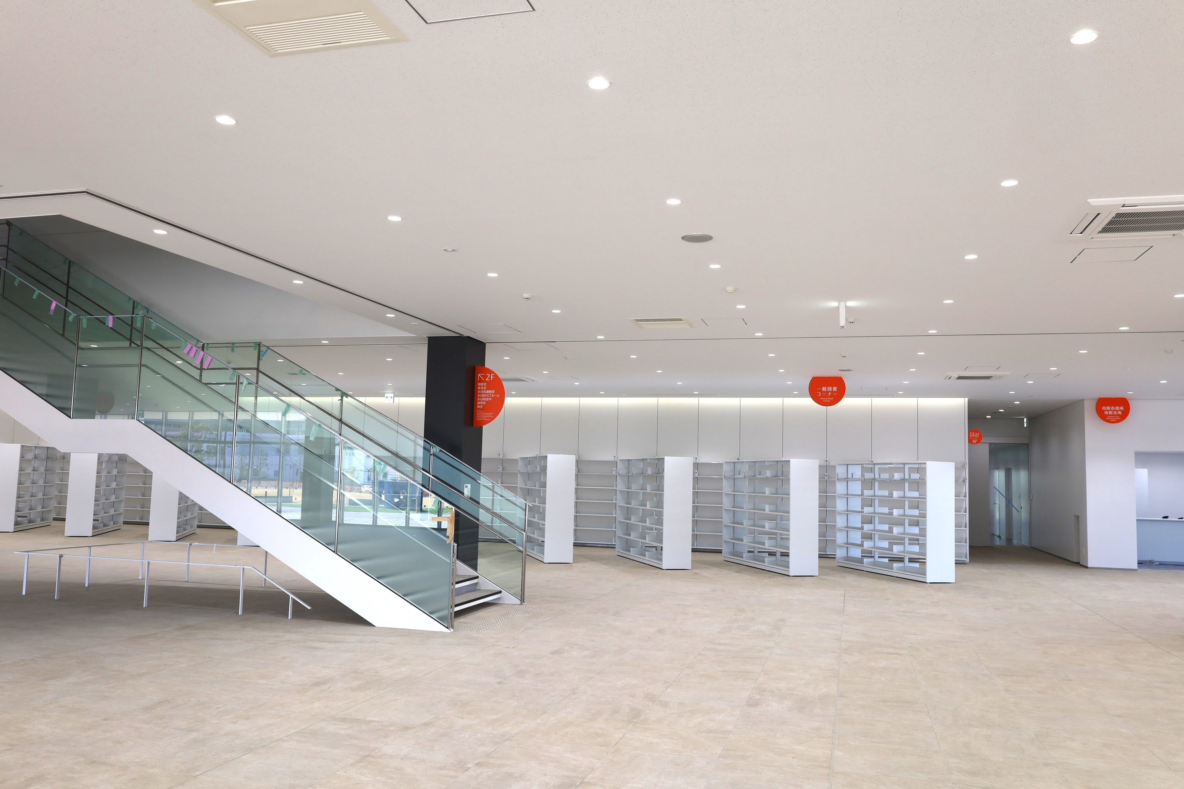 1階…多目的エントランスラウンジ、多目的室、図書室、ブックカフェ、市原支所、教育センター、青少年指導センター