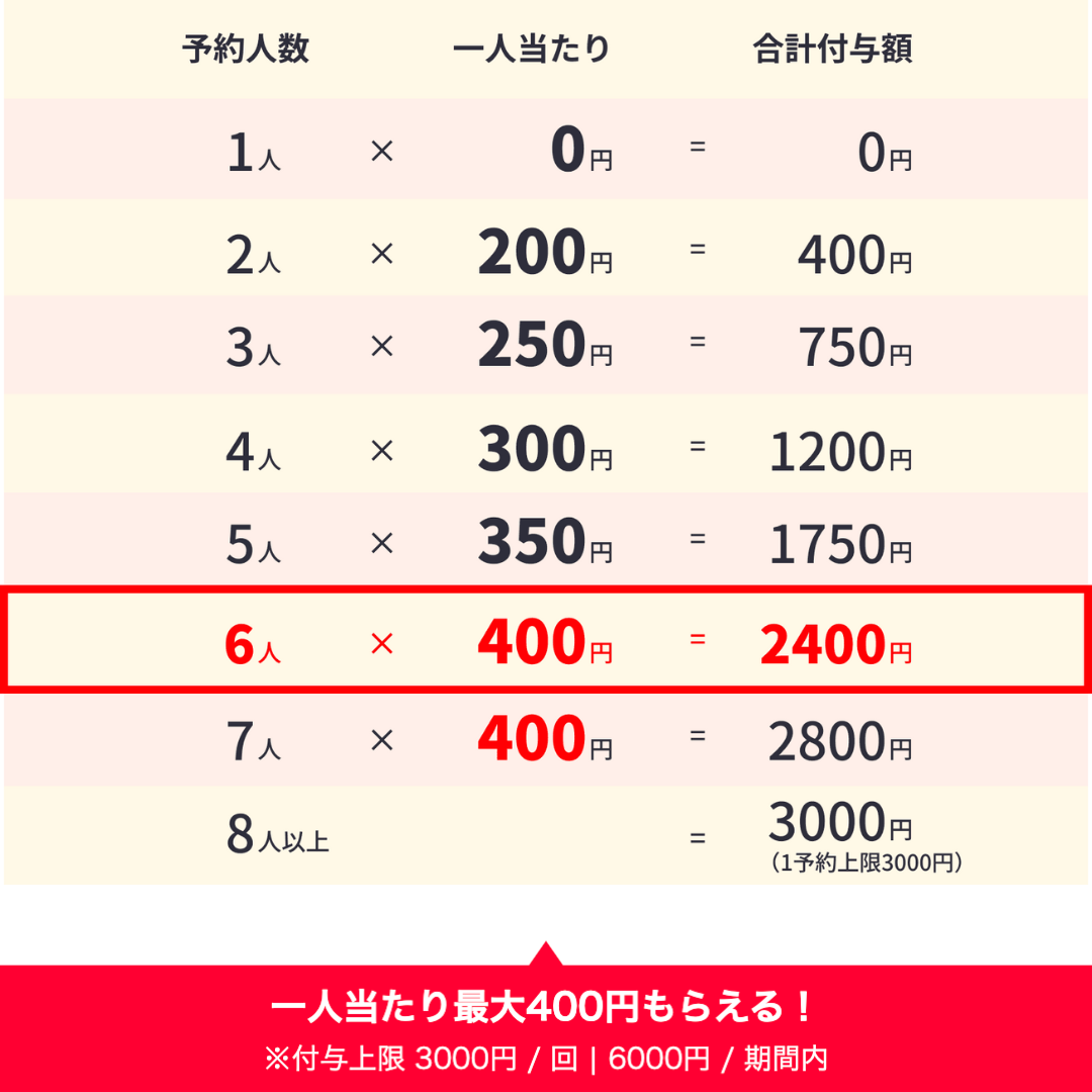 ※予約人数によって一人あたりの付与ポイントが変動します(キャンペーン概要参照)