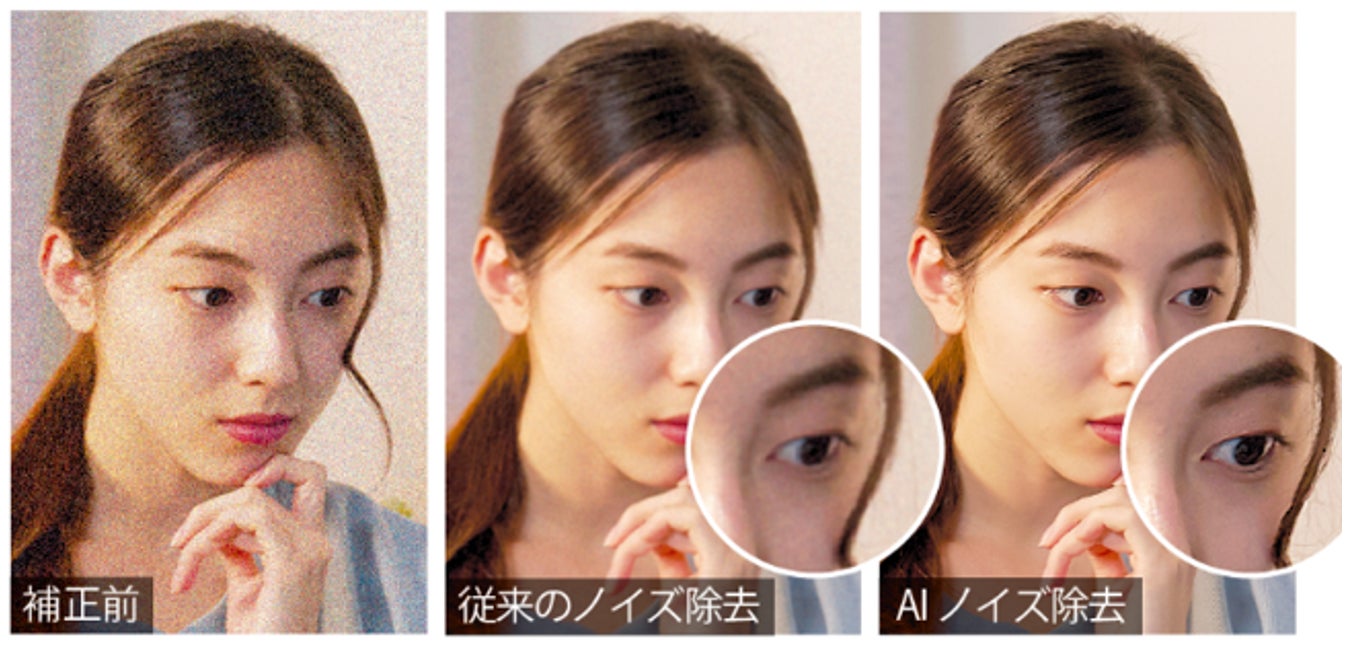 ・AIテクノロジーにより写真のノイズを除去します。ぼかしを加えず、鮮明で自然な仕上がりになります。