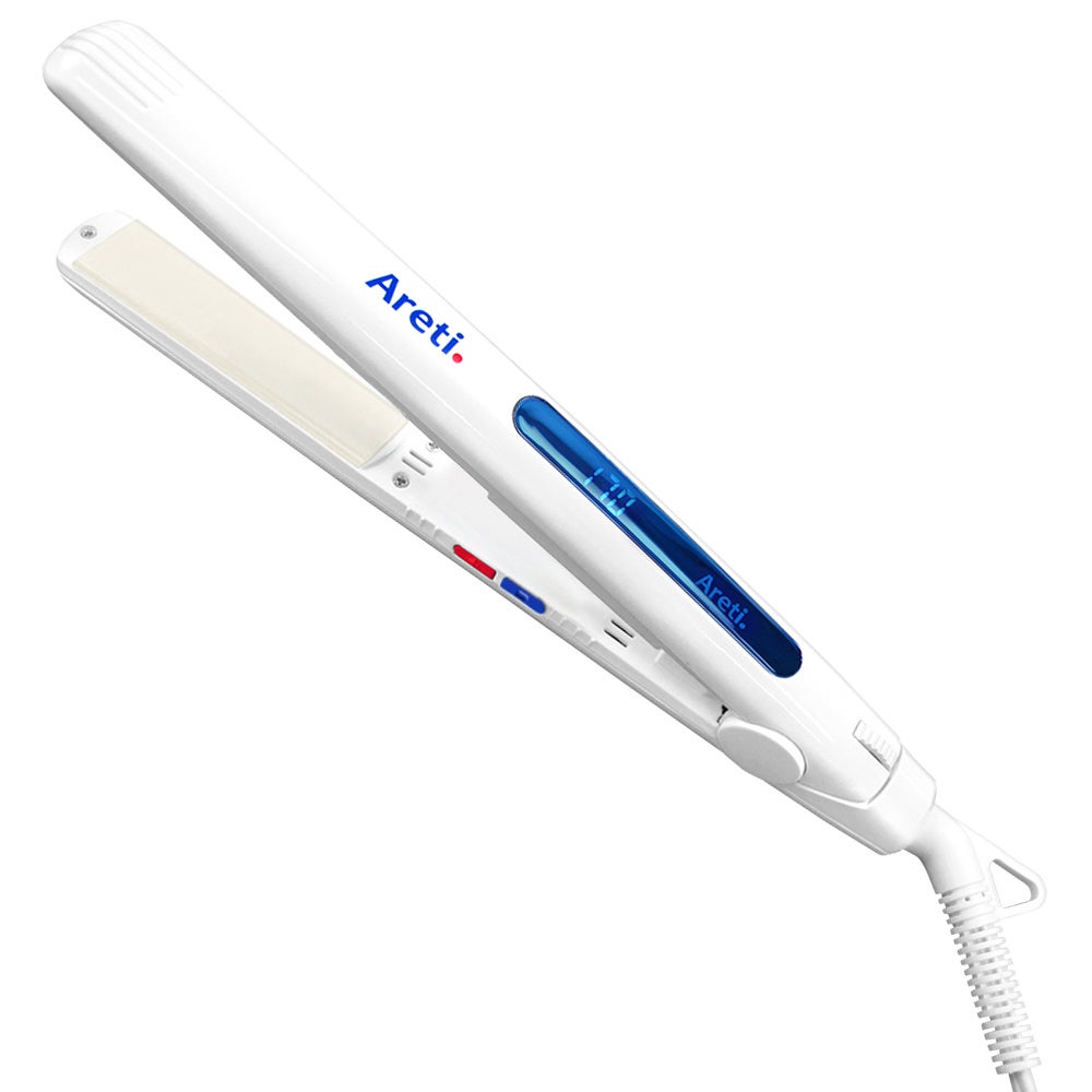 そんな声に応えるアレティの2wayヘアアイロン(i679PCPH-WH)は80℃から設定でき、髪に優しい純セラミックプレート+ハイブリッドプレートを採用。片面ずつ違うプレートを組み合わせる理由は熱ダメージを抑えることはもちろん、髪を押しつぶさず、摩擦を軽減するためでもあります。
