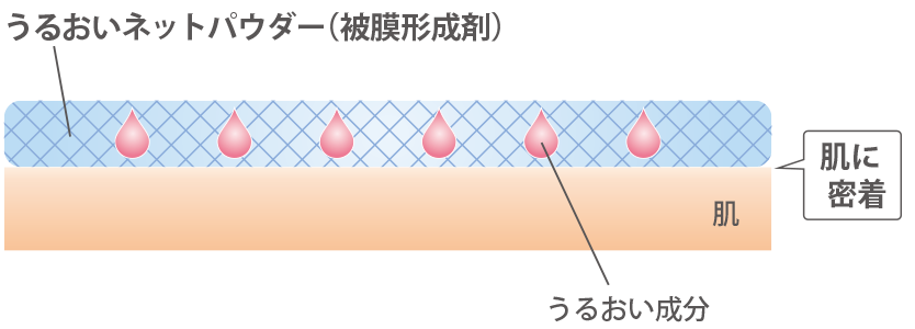 高密着のうるおいネットが表情変化に合わせて動く。 だからマスクにつきにくい!乾燥しがちな肌にピタッと密着する「うるおいネットパウダー」配合。網目構造でうるおいを抱えたメッシュ状のネットが表情変化に合わせて動き、高い密着力で乾燥浮きやヨレを防ぎながら、マスクにつきにくくします。