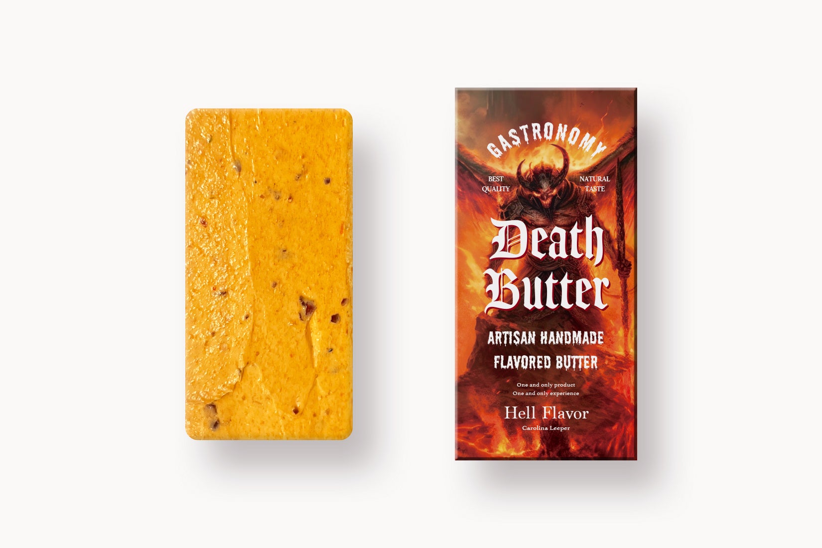 「DEATH BUTTER」の特徴は、口の中でバターが溶けた瞬間にカッと辛味を感じて、その後はバターの濃厚なミルク感や他の食材の風味が広がり、絶妙なバランスが楽しめるデザインです。辛さへの挑戦者にとって、新たな食の刺激を提供します。