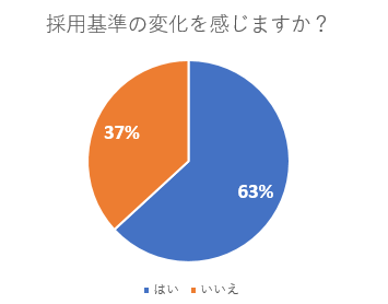 人材確保が困難であることを受けて「採用基準の変化を感じますか?」という質問に対して「はい」が6割以上を占めました。当社求人データ上では採用基準の変動はあまり見られないものの最前線では敏感に変化を感じ取っており、今後の動向とどのように連動するのか興味深い結果となりました。