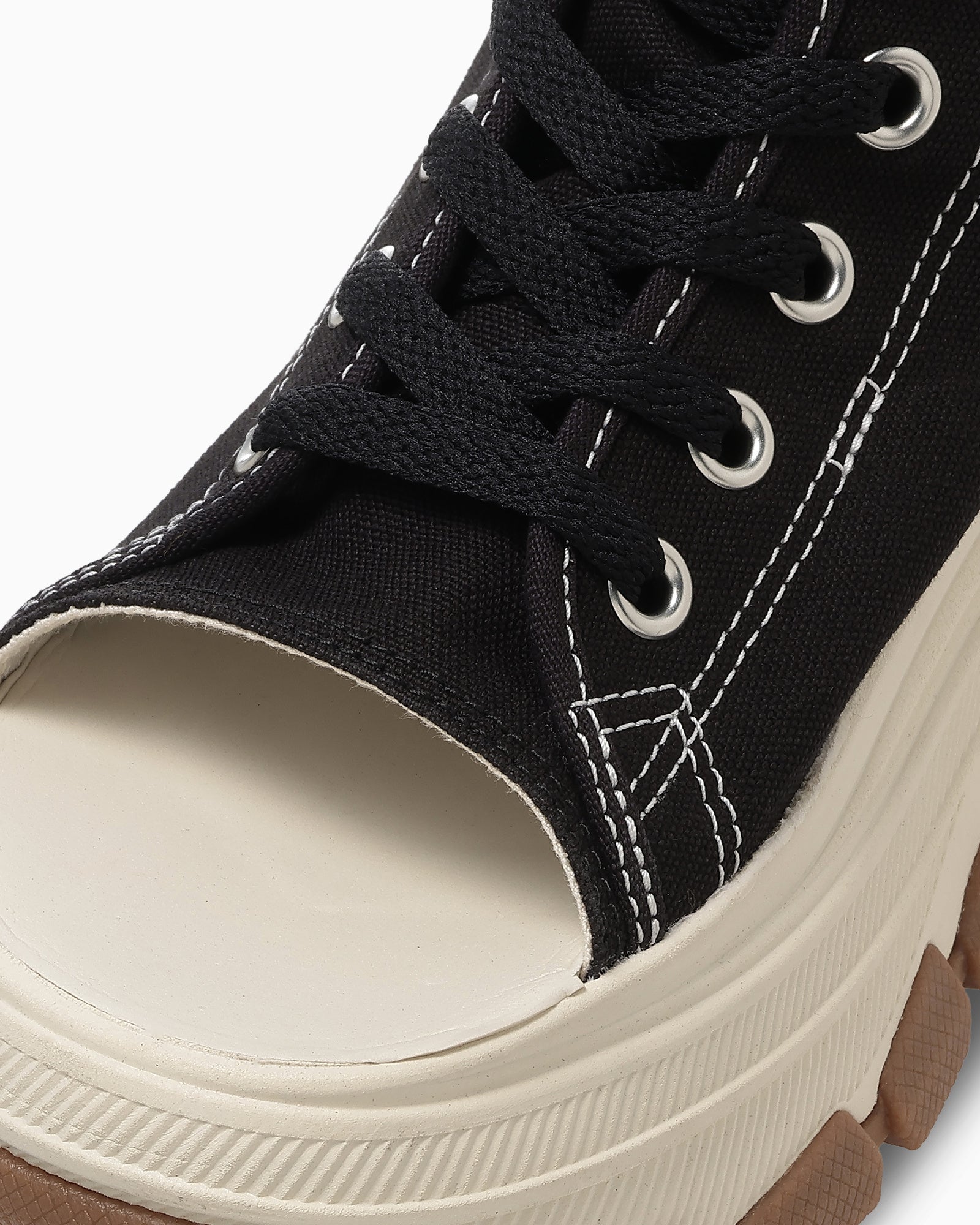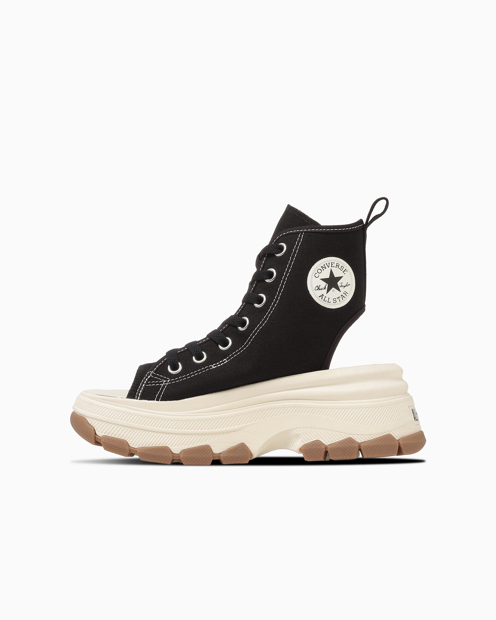 ボリューム感のあるソールデザインが特徴のオールスター トレックウエーブのレディス向けサンダルモデルです。オールスターのイメージを残しながら、つま先とかかとを大胆にカットアウトし、キャンバス素材を用いたHIカットパターンを取り入れることで、サンダルならではのデザインとオールスターらしさを両立した一足に仕上げています。