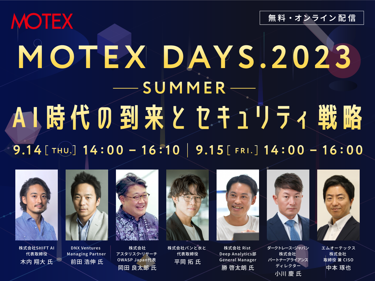 《イベント情報》基調講演にSHIFT AI 木内 翔大 氏登壇!「MOTEX DAYS.2023 -SUMMER- AI時代の到来とセキュリティ戦略」を開催