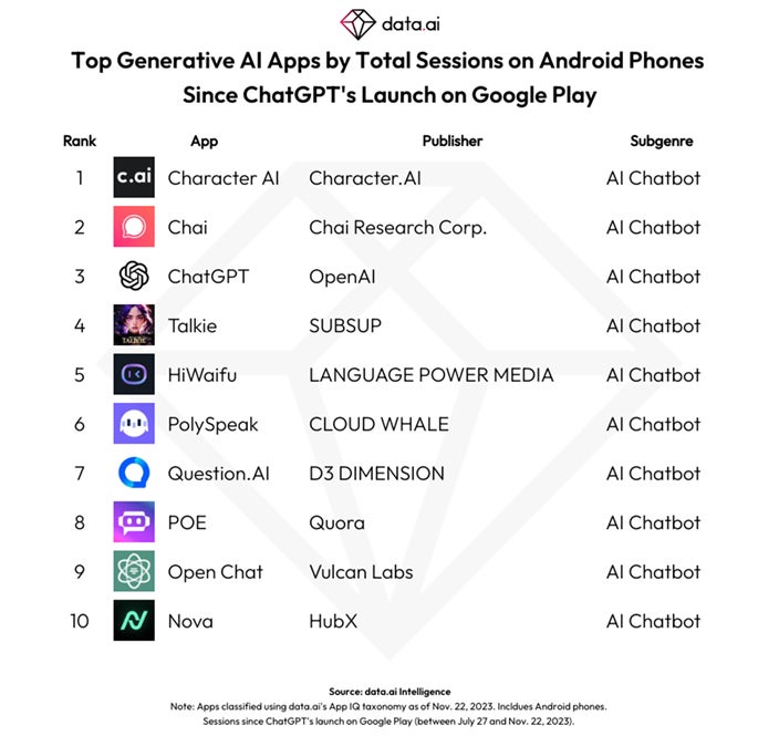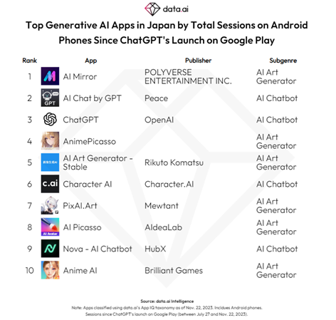 ChatGPT誕生から1周年!data.ai、1年間の軌跡に対する分析結果を発表