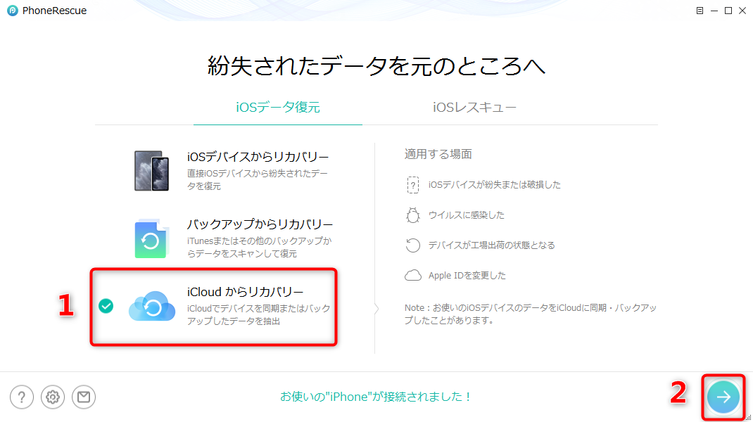 PhoneRescue for iOSは新しいバージョンを更新しました。バグを修正し、データ読み込みの成功率を向上して「iCloudからリカバリー」機能を最適化しました。