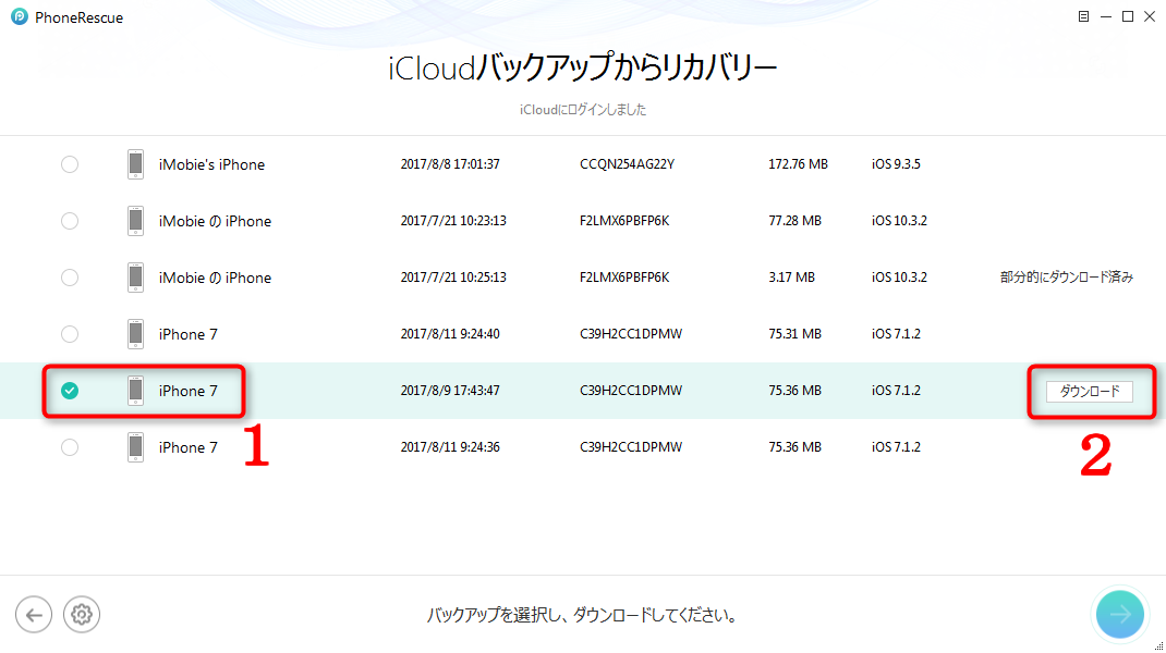 Step 3: 必要なiCloudバックアップを選択して、ダウンロードします。