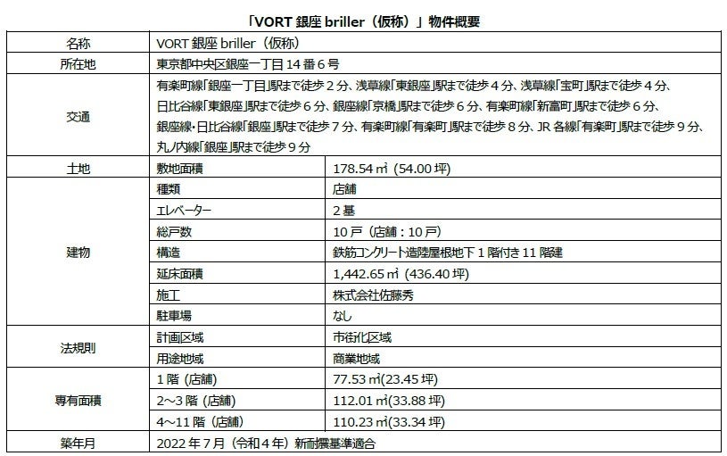 販売用不動産『「VORT銀座briller(ブリエ)(仮称)』を取得