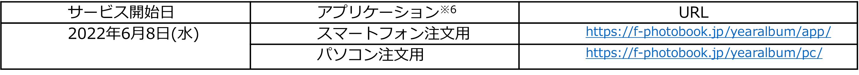| 2022年6月8日(水) | スマートフォン注文用 | https://f-photobook.jp/yearalbum/app/ |
