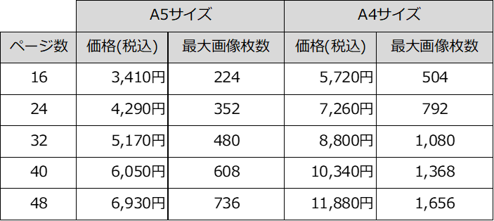 ※2:A4サイズの場合。A5サイズは見開き(2ページ)最大32枚。