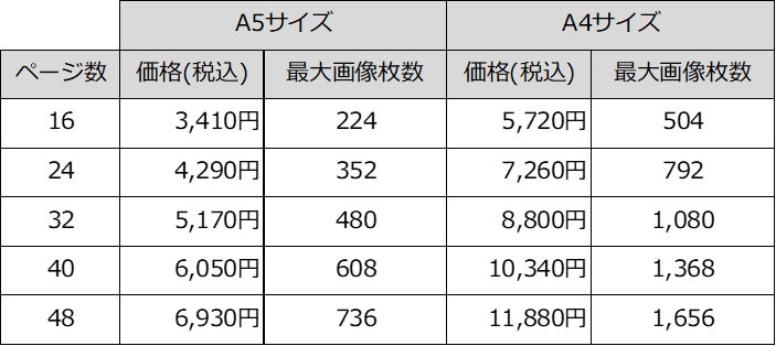 ※1:アルバムのテーマとして「たくさんの写真でつくる」を選択し、A4サイズ、48ページのフォトブックを作成する場合。A5サイズの場合は最大736枚。