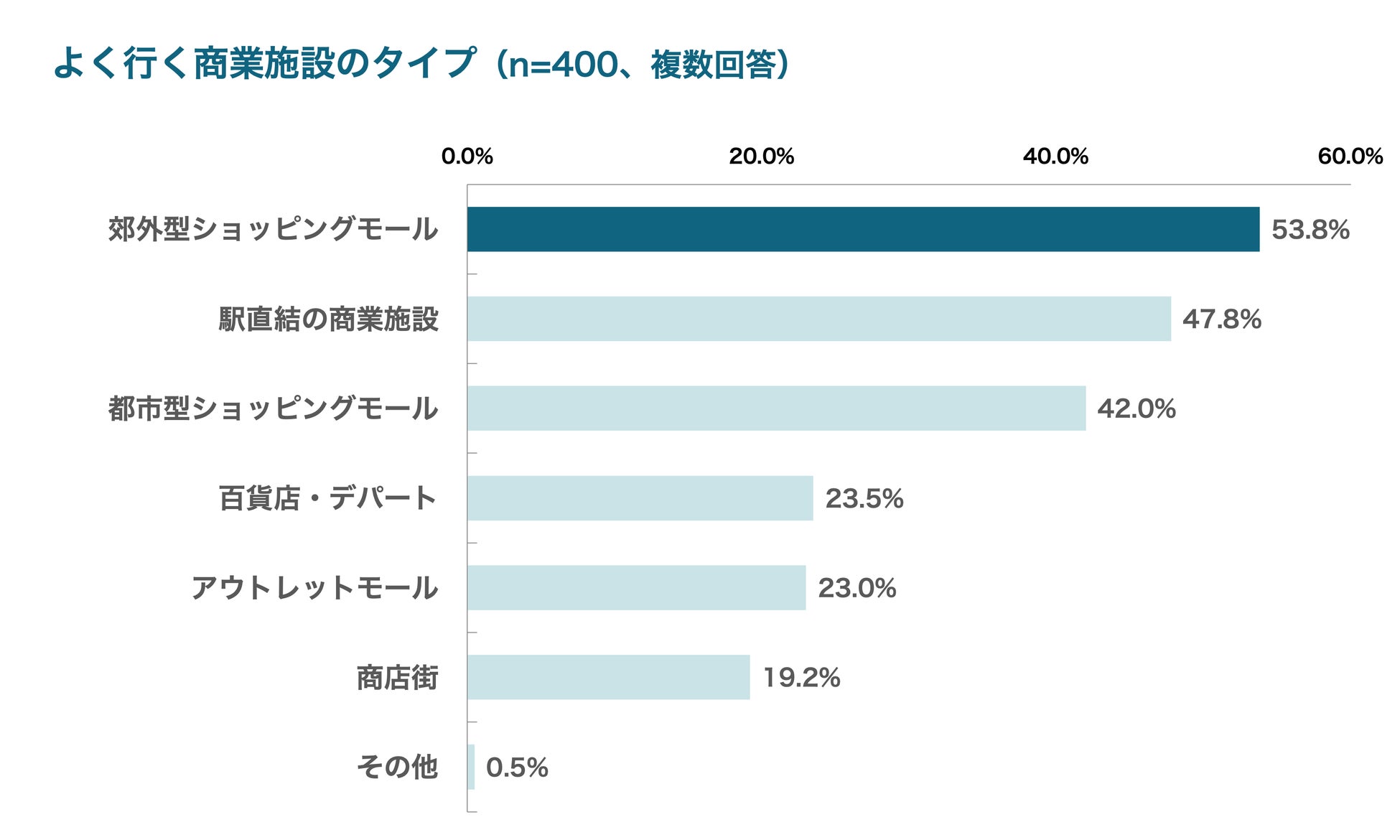 なお、よく行く商業施設のタイプでは、「郊外型ショッピングモール」や「駅直結の商業施設」が中心で、日常の買い物から休日のレジャーまで、シーンに応じて施設を使い分ける傾向が見られました。