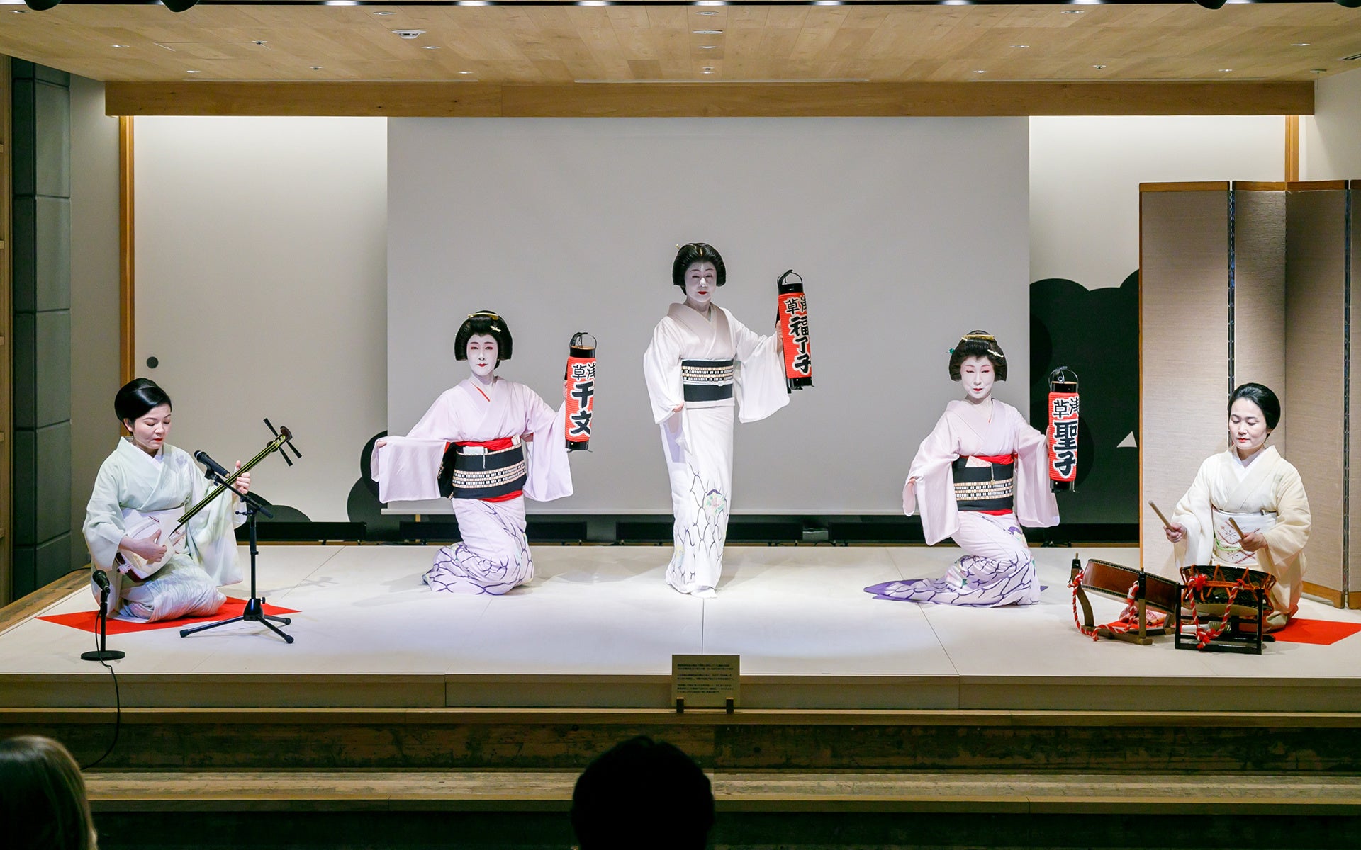 浅草芸者は、伝統の装束に身を包み、流麗で優雅な踊りで「くみ踊り」の舞台を彩ります。