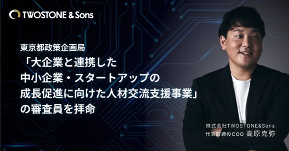 TWOSTONE&Sons代表取締役COO高原克弥、東京都「大企業と連携した中小企業・スタートアップの成長促進に向けた人材交流支援事業」の審査員を拝命