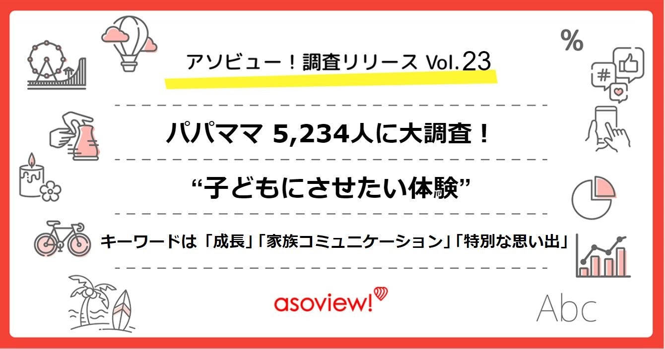 【アソビュー!調査リリース】約5,200人の家族に聞いた、“子どもにさせたい体験” の調査を実施。キーワードは「成長」「家族コミュニケーション」「その時その場所でしかできない特別な思い出」