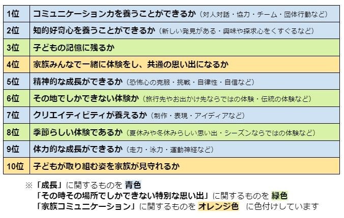 ■ “子どもにさせたい体験” について重要視する項目ランキング