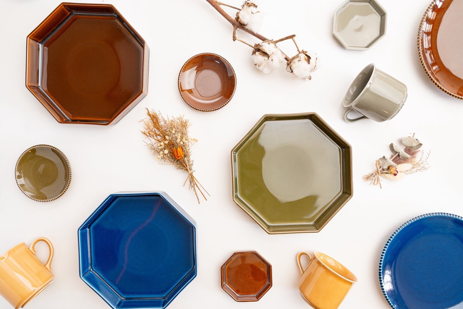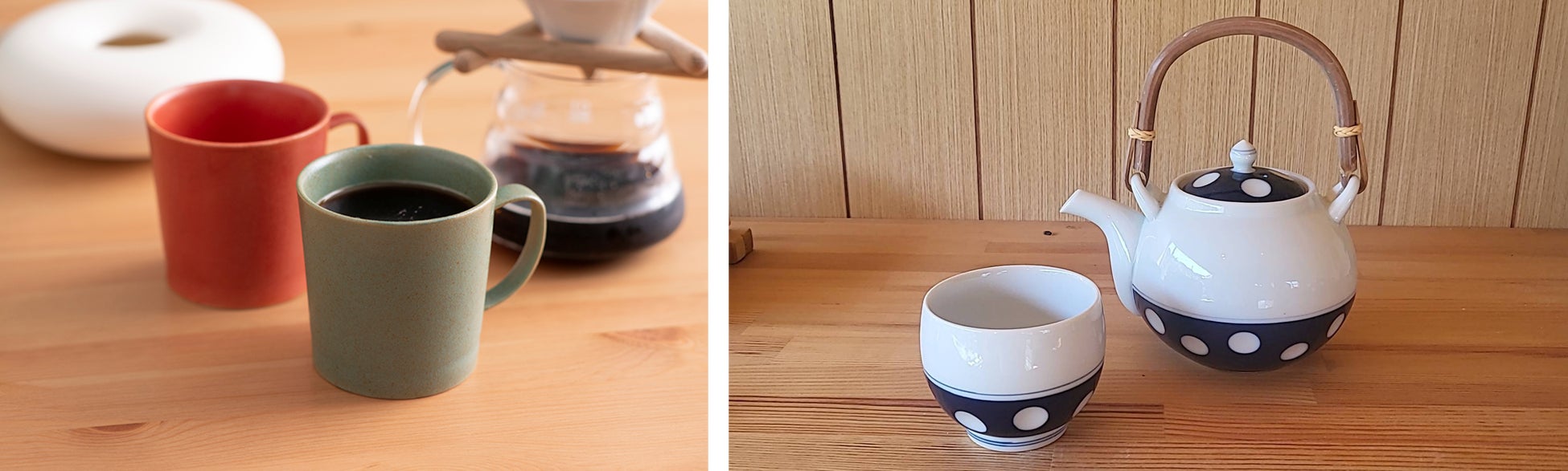 肥前吉田焼の里である佐賀県嬉野市は、美しい自然と豊かな資源に恵まれた土地です。「日本三大美肌の湯」として名高い「嬉野温泉」や、全国的に有名な「嬉野茶」の産地としても知られています。この地域の特性を生かし、茶器を製造する窯元も多く、昭和の食卓の象徴とも言える「水玉模様の急須や湯のみ」は、肥前吉田焼を代表する商品のひとつです。