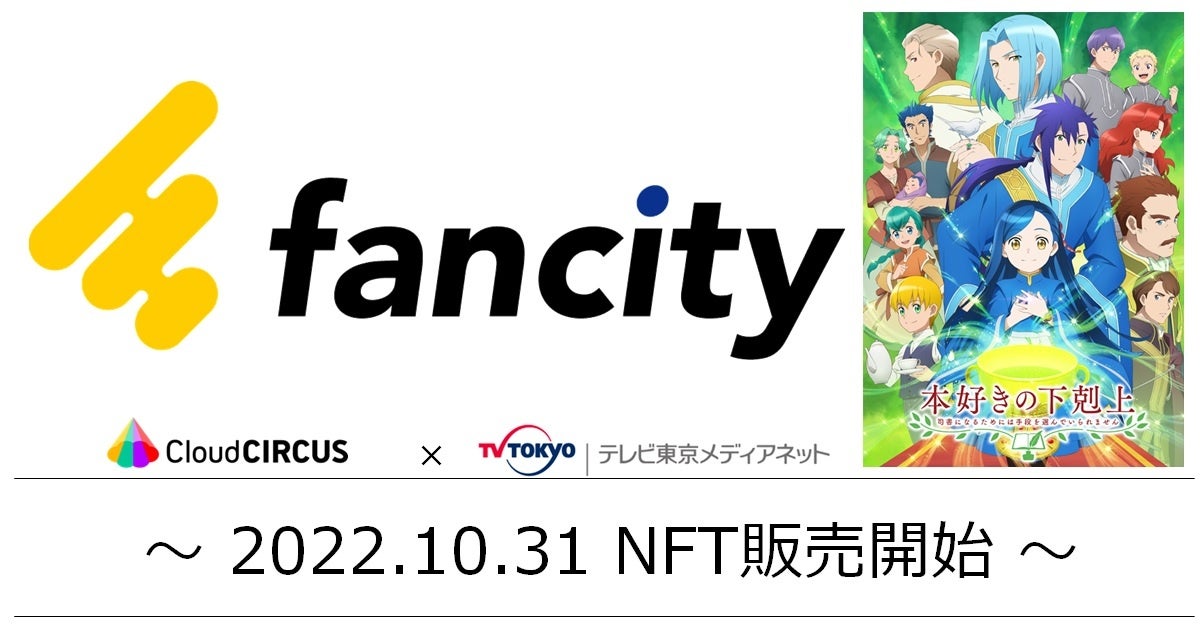 クラウドサーカス株式会社(本社:東京都新宿区、代表取締役:北村健一)は、株式会社テレビ東京メディアネット(本社:東京都港区、代表取締役社長:加増良弘)との共同事業による “ アニメ特化型 ” NFTマーケットプレイス『 fancity(ファンシティ)』を本日10月31日に開設いたします。
