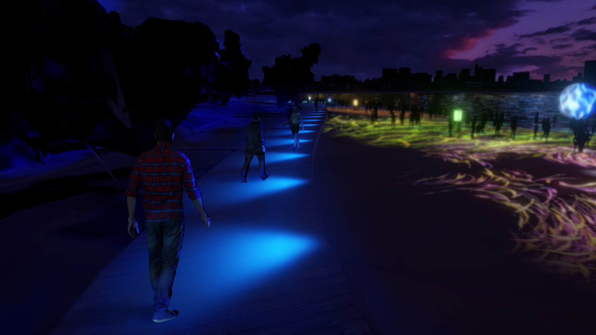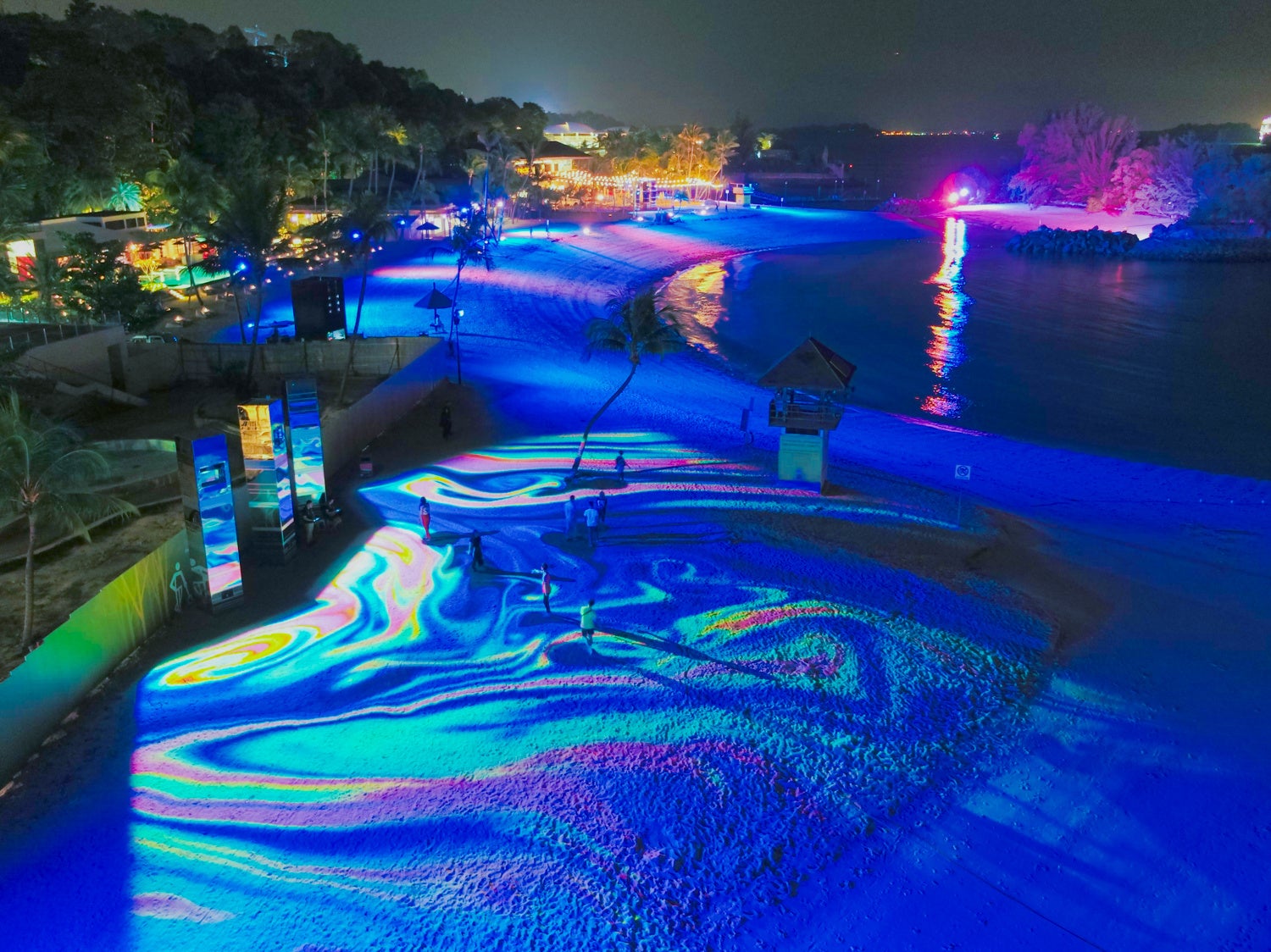 来場者をビーチへと誘う、色彩ゆたかな光の道