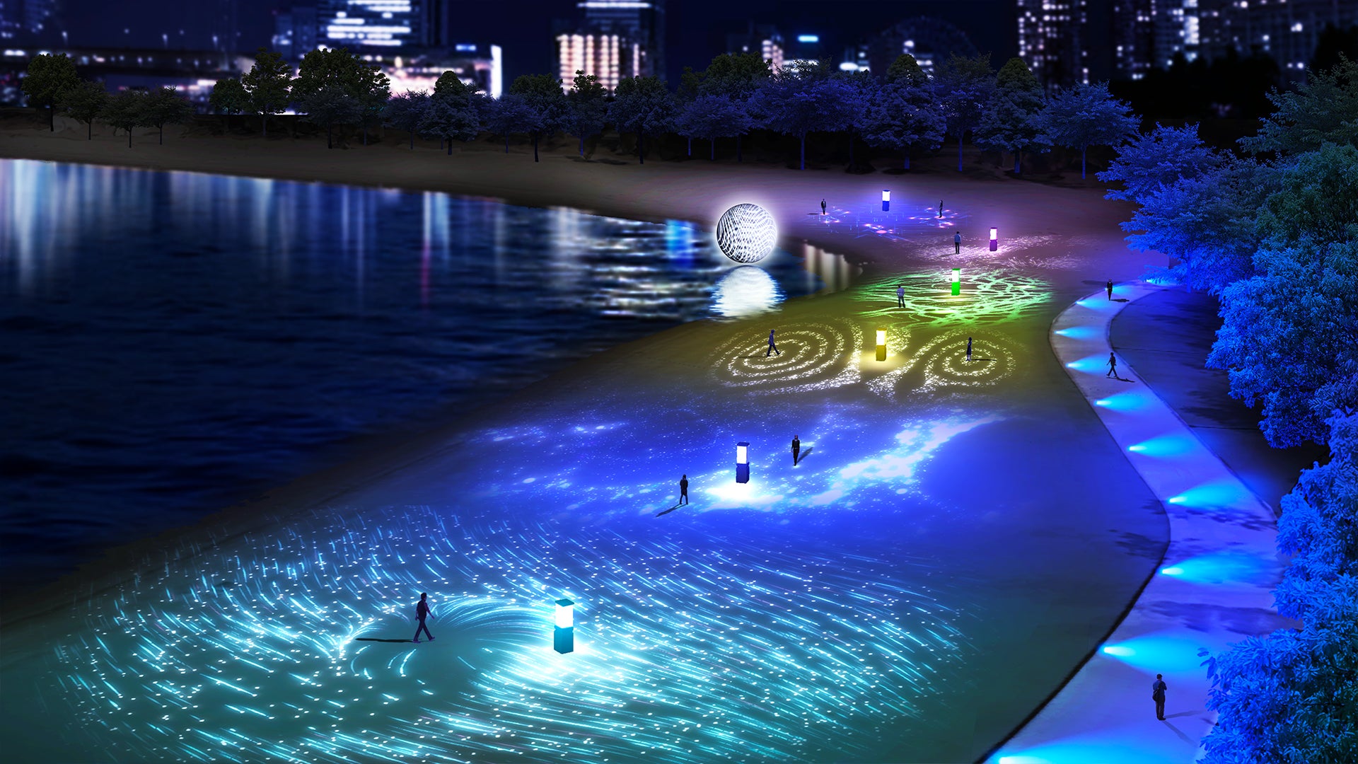 おだいばビーチ約3,000㎡を彩る、光のサウンドエンタテインメント体験