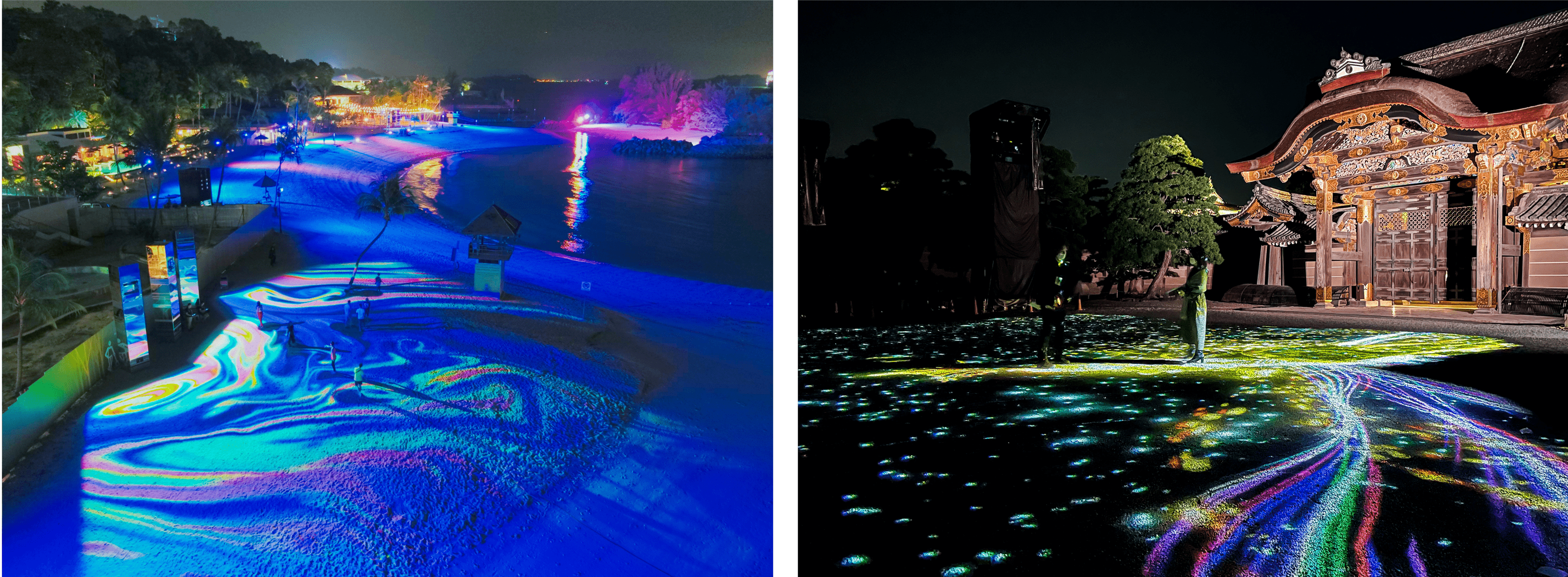 これまでワントゥーテンは、シンガポール セントーサ島シロソビーチや世界遺産・元離宮二条城にて、クリエイティブAIを活用した、インタラクティブ ランドアートを展開してまいりました。