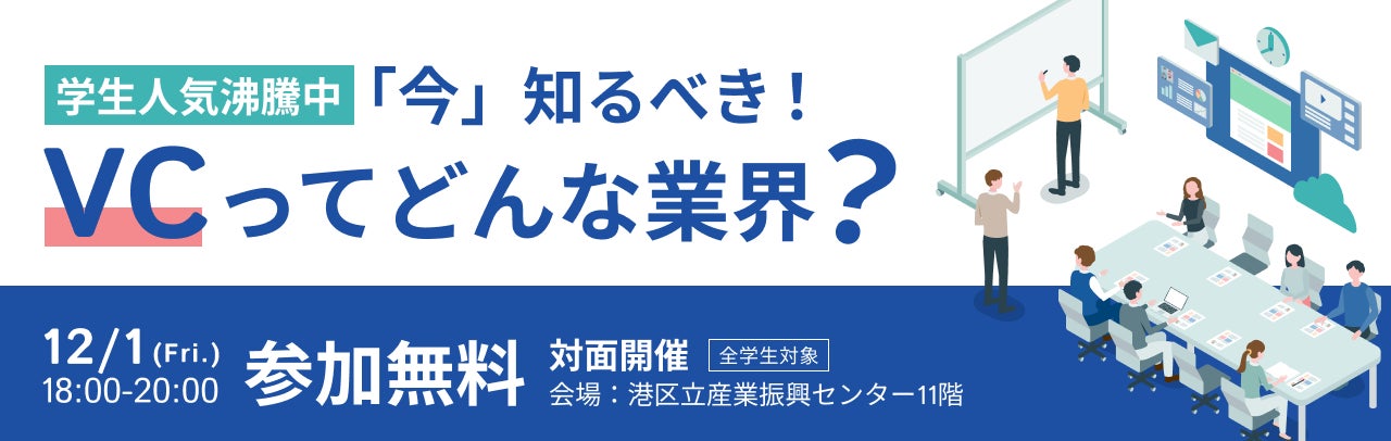 これからの成長が期待されるスタートアップ企業等を様々な形で支援している『VC業界』。注目度が高まりつつありますが、なかなか学生にとって情報を手に入れる機会が少ないのが現状です。