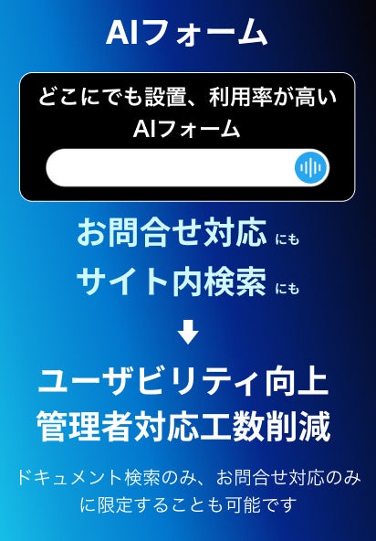 そこで新たに追加されたユーザーインターフェースが、サイト内のどこにでも設置可能で、起動の手間なく入力可能な「AIフォーム」と、サイト内のコンテンツを効率よく検索できる「検索型」の利用画面です。