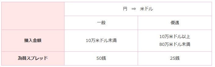 ・100,000米ドル × 為替スプレッド25銭※ = 25,000円 ※優遇レートが適用