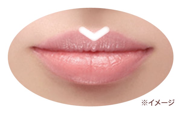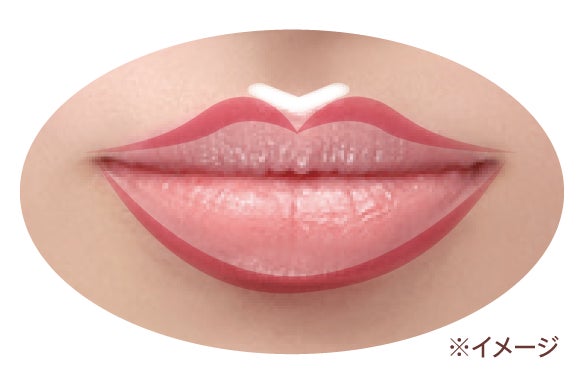 リップを塗った上唇の山部分の外側を縁取るようにVを描きます。