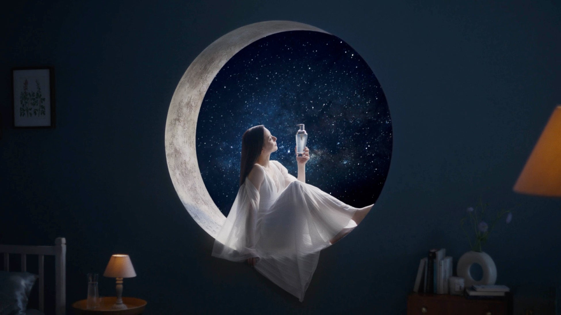 新テレビCMでは、新木優子さんがブランドロゴでもある月を模した大きな丸い窓から星空を眺めている姿や、寝室でリラックスしながら商品を手に取る姿など、夜風になびく新木さんの美しいロングヘアと共に描かれるナイトケアをイメージした世界観にも注目です。メイキングでは、撮影した映像をご自身で確認しながらスタッフと共に談笑する様子など、リラックスしながら撮影に臨む姿も見受けられます。さらに、インタビューでは、多忙な日々の中でも続けている美容習慣や、その美容時間を作るコツについてもお話しいただきました。