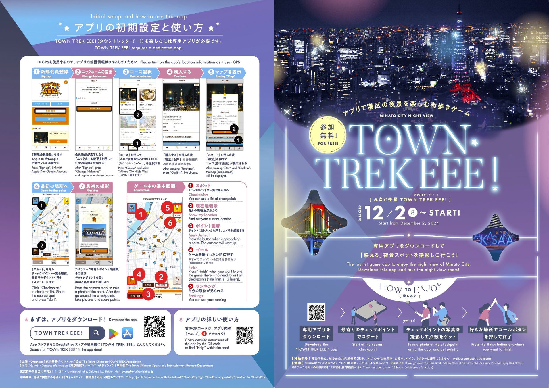 東京新聞(中日新聞東京本社)では、港区の夜景を楽しむ街歩きゲーム「みなと夜景 TOWN TREK EEE!(タウントレック・イー!)」を開催いたします。
