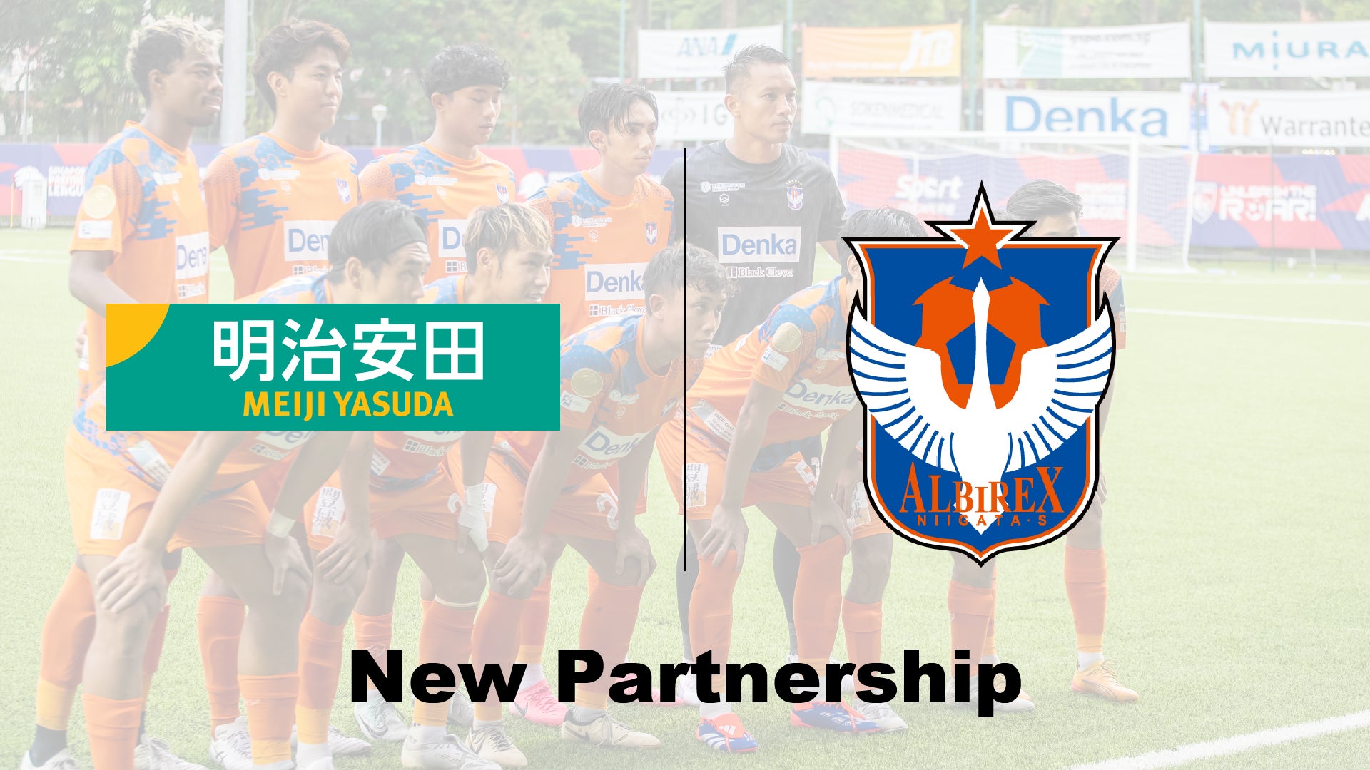 このたび、アルビレックス新潟シンガポールは、明治安田生命保険相互会社様とオフィシャルパートナー契約 (トレーニングウェアパートナー) を新たに締結し、ご支援いただくこととなりましたのでお知らせいたします。
