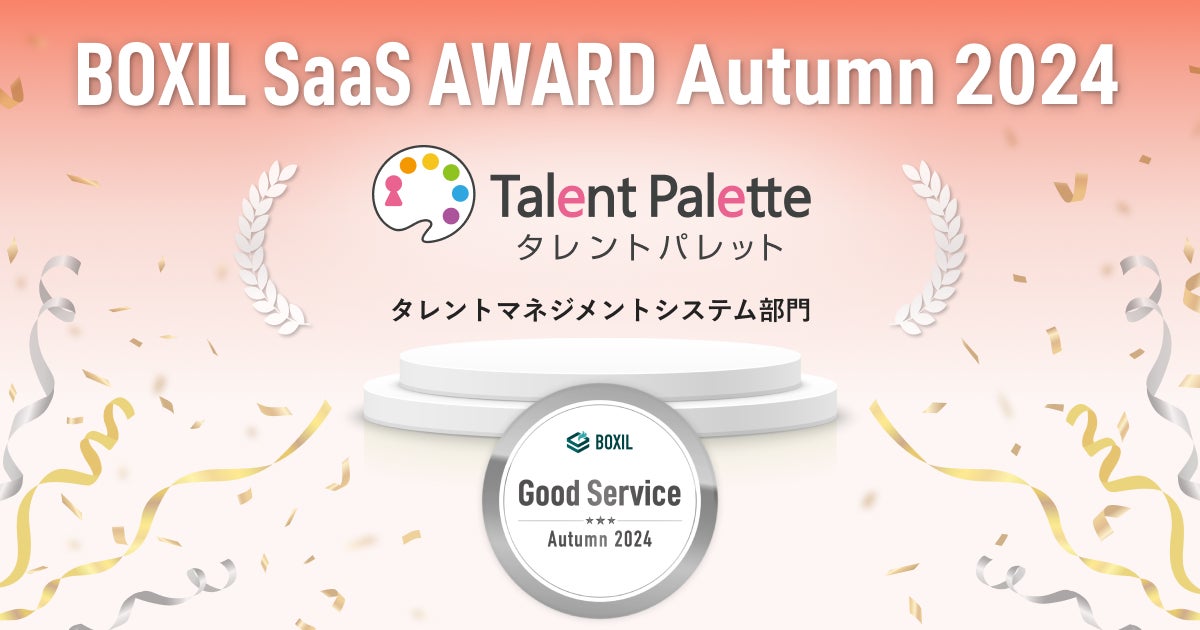 株式会社プラスアルファ・コンサルティング(本社:東京都港区、代表取締役社長:三室克哉 証券コード:4071)は、科学的な人材活用や人的資本経営の推進、人事業務のDX化などを背景に多くの企業で導入が進んでいるタレントマネジメントシステム「Talent Palette(以下「タレントパレット」)」がSaaS(※)比較サイト「BOXIL SaaS(ボクシル サース)」を運営するスマートキャンプ株式会社(本社:東京都港区、代表取締役:林 詩音、以下「スマートキャンプ」)が実施する、「BOXIL SaaS AWARD Autumn 2024」のタレントマネジメントシステム部門にて「Good Service」を受賞しましたことをお知らせします。9期連続での受賞となります。