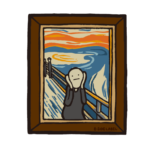 真顔絵画(真珠の耳飾り)、真顔絵画黒髪黒服、ウーパーイーツ(緑メット)、デフォの叫び、