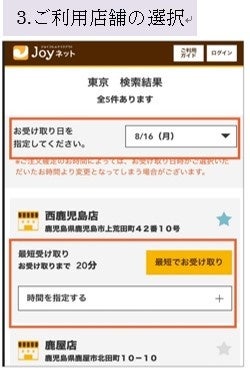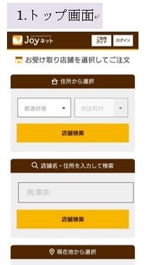ご利用店舗を検索しご注文いただくと、ご指定のジョイフル店舗で商品が受け取れるサービスです。