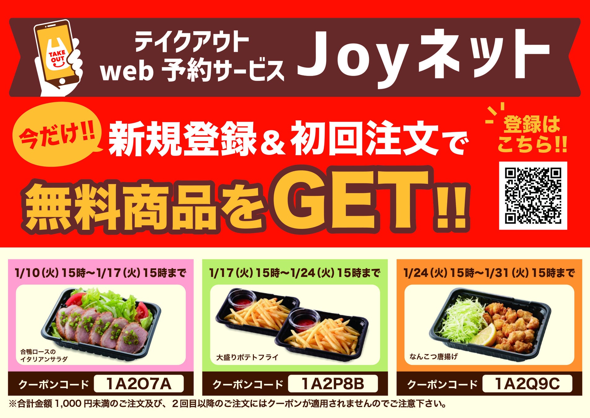 【Joyネット新規登録のお客様限定】テイクアウトご注文の方に対象商品 無料プレゼントキャンペーンを開催!!