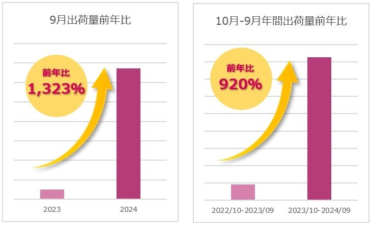 1,323%と好調であったことをご報告いたします。また、9月までの年間出荷量累計前年比は920%を達成いたしました。
