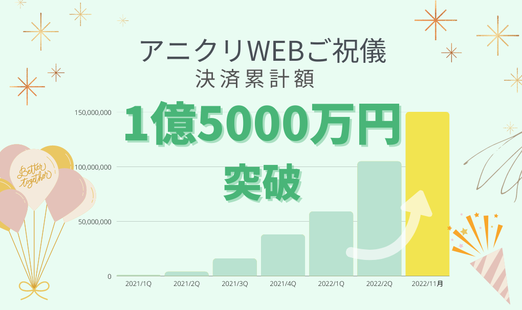 WEBご祝儀システム「アニクリWEBご祝儀」ご利用累計額1億5千万円突破!