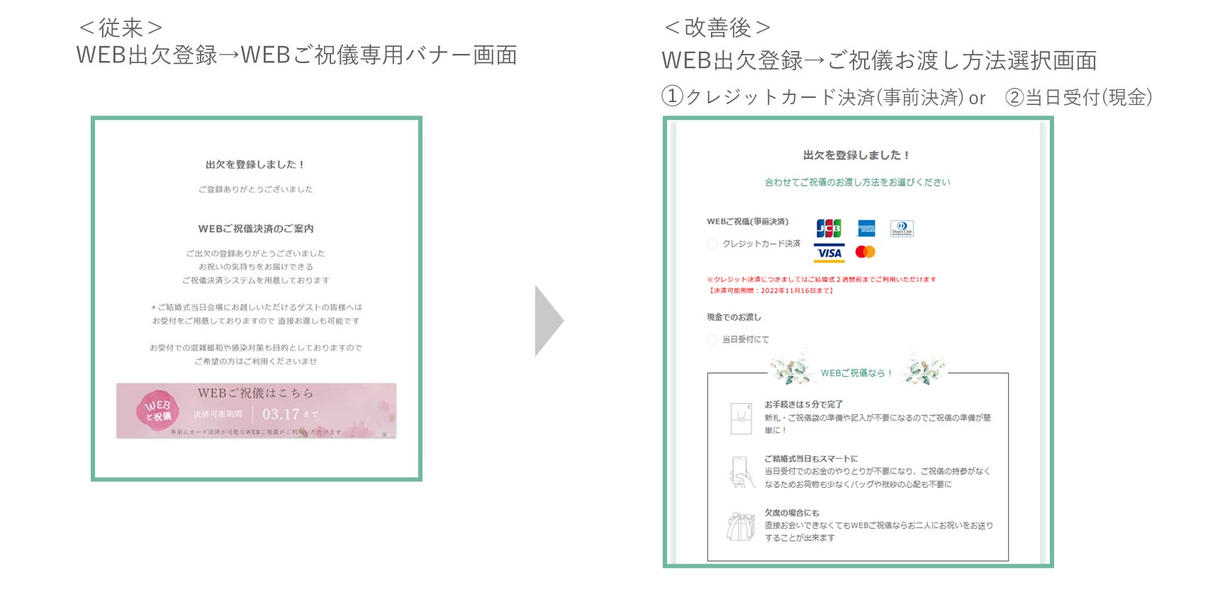 <改善後> WEB出欠登録後 ⇒ ご祝儀のお渡し方法を選択する導線へ変更
